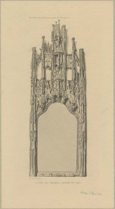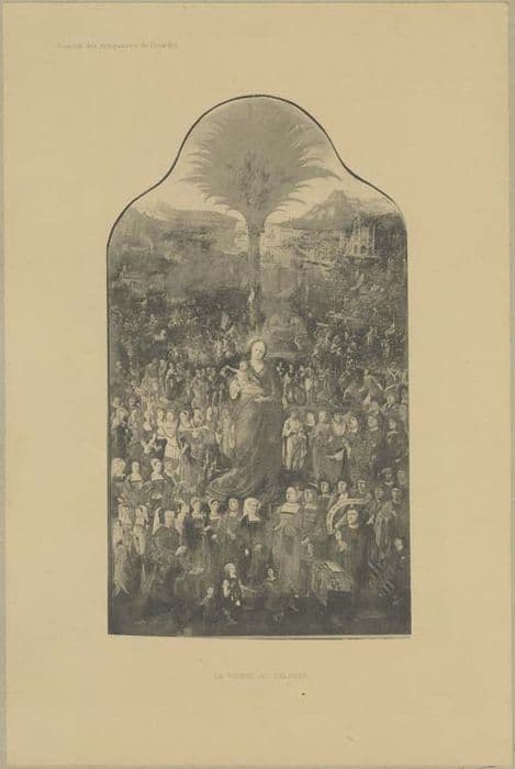 Ce panneau a été donné en 1520 par Nicolas le Caron, prêtre, conseiller-maître du Puy. Une copie de ce tableau existait au musée d'Amiens, placée dans le cadre original. Depuis 1908, l'original a remplacé la copie au musée. A partir de la liste établie par P.F. Marcou, inspecteur des monuments historiques en charge des objets mobiliers en 1907, le procès-verbal de dépôt suivant est établi le 15 juillet 1911 : <I>Ministère de l'instruction publique et des BA - département de la Somme : Dépôt au musée de Picardie d'objets mobiliers (objets figurant à l'inventaire du mobilier légal), provenant de l'ancien palais épiscopal d'Amiens. Procès-verbal.Entre les soussignés Monsieur René Favry, architecte des Monuments historiques du département de la Somme, demeurant 7 impasse Joron à Amiens, représentant de l'Administration des BA et Monsieur Léon Delambre, conservateur du musée de Picardie demeurant rue Saint Geoffroy n°33 à Amiens représentant l'Administration municipale. Il a ét arrêté ce qui suit : En exécution du decret du 13 mars 1919, le service domanial a remis à l'Administration des BA aux termes d'un pv en date du 22 mai 1909 les objets mobiliers ci-après désignés existant dans l'Ancien Palais épiscopal d'Amiens :- huit pannneaux peints figurant la Glorification de la Vierge et provenant de la confrérie de N.D. du Puy à la cathédrale d'Amiens 1518, 1519, 1520, 1521, 1525, 1603, 1618 ; - Le Christ bénissant, panneau peint, 16e siècle ; - Diptyque : La Vierge à l'Enfant, la Vision de Saint-François d'Assise, donateurs, panneaux peints, commencement du XVIIe siècle. Ces dix pièces appartenant à l'Etat, comme provenant de la Cathédrale d'Amiens et classées par arrêté du 6 juin 1902, ont été à titre de mesure conservatoire transférées au musée de Picardie suivant pv du 19 décembre 1906. En vertu d'une décision prise par M. le Ministre de Instruction Publique et des Beaux-Arts à la suite d'un accord intervenu avec la Ville d'Amiens, ces objets doivent être placés à titre de dépôt au musée de Picardie. En conséquence M. R. Favry représentant à l'Administration des Beaux-Arts déclare remettre les objets ci-dessus détaillés à M. Delambre représentant l'Administration municipale es qualité qui les reçoit en dépôt et se charge à partir de ce jour d'en assurer la garde et la conservation. Fait à Amiens le 15 juillet 1911.</I>
