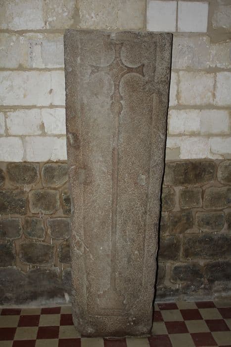 Ces dalles sont en forme de trapèze, plus larges à la tête qu'aux pieds, et sont entourées d'une bordure encadrant une croix en relief, fleuronnée pour une des dalles, ancrée pour l'autre.