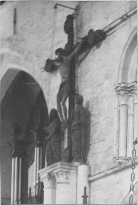 groupe sculpté : Christ en croix entre la Vierge et saint Jean