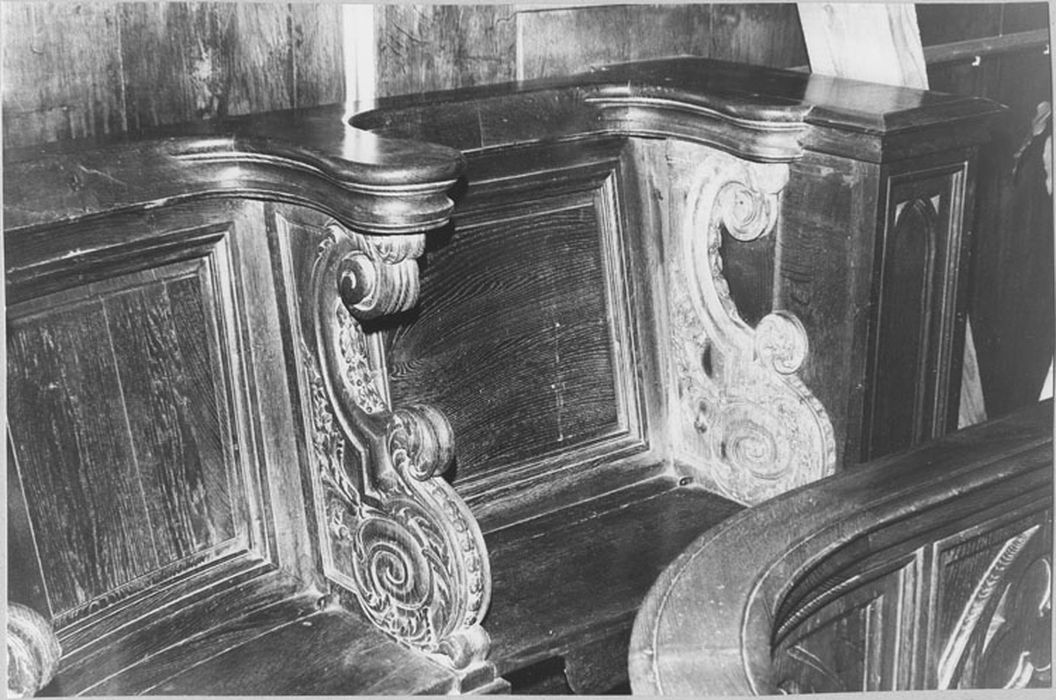 Ces stalles proviennent de l'abbaye de Corbie. Les lions qui ornent les rampants sont probablement de François Cressent, né en 1663 et mort vers 1750 à Paris.