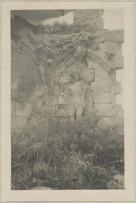Cette statue a été fortement mutilée à la suite du bombardement qui a démoli la chapelle.