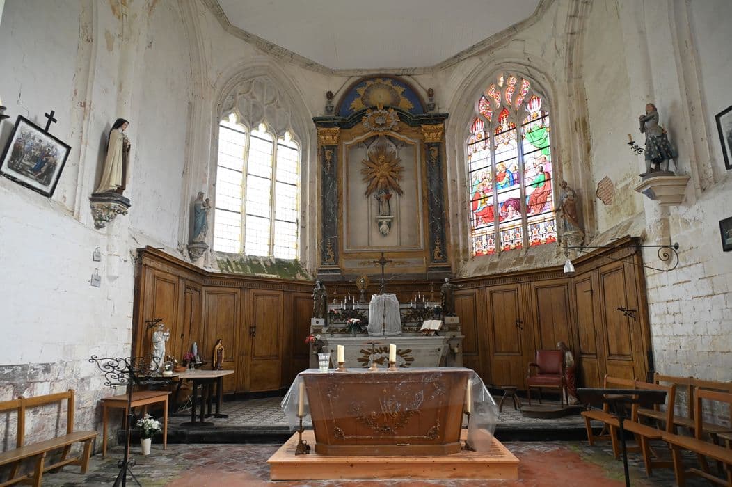 POP | Plateforme ouverte du patrimoinemaître-autel, 3 statues : Vierge à l'Enfant, Saint Paul, Saint Pierre en pape, tabernacle, retable, exposition