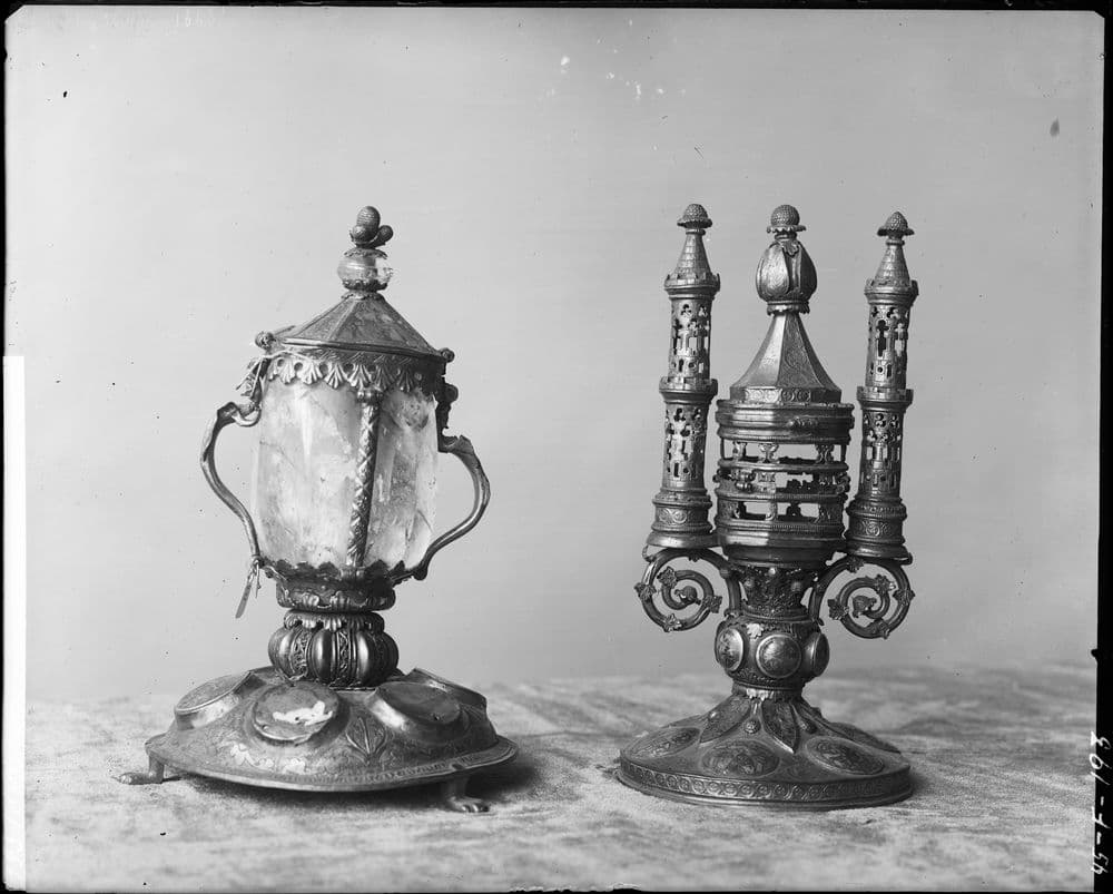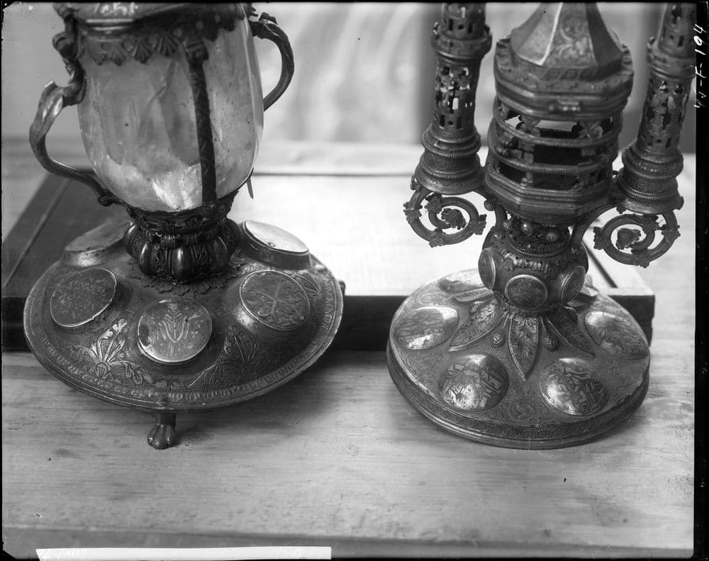 Reliquaire pédiculé composé d'un vase cylindrique en cristal de roche.