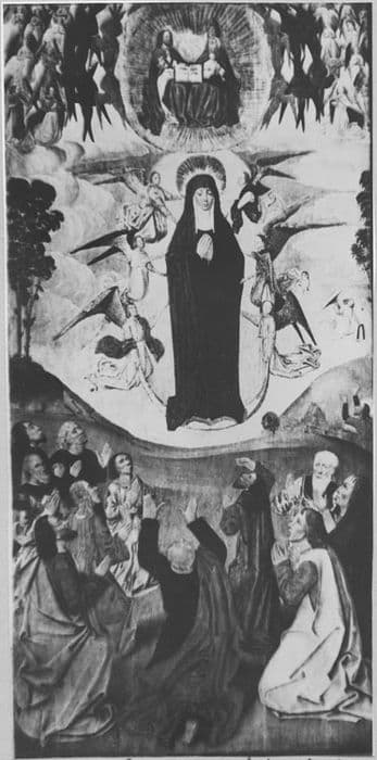 Volet de retable à double face représentant l'Assomption de la Vierge, et sur l'autre face, en grisaille, sainte Marie-Madeleine.