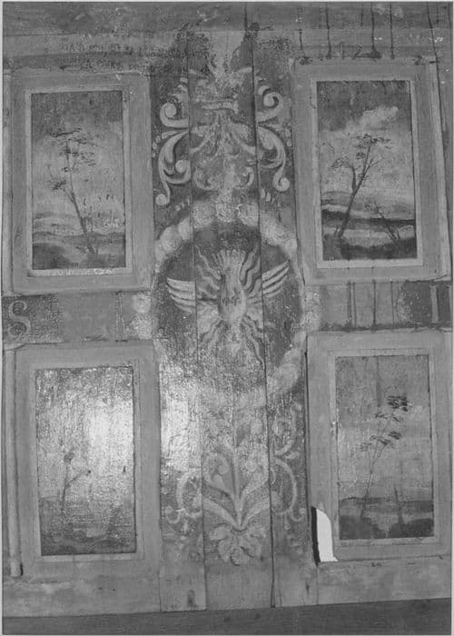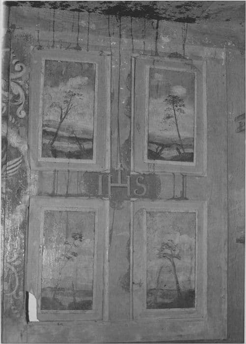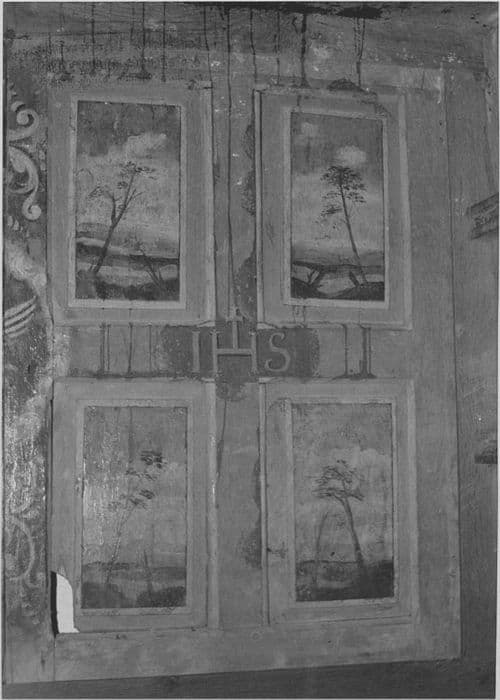 Ce devant d'autel est incorporé au placard de sacristie, dont il constitue le fond.