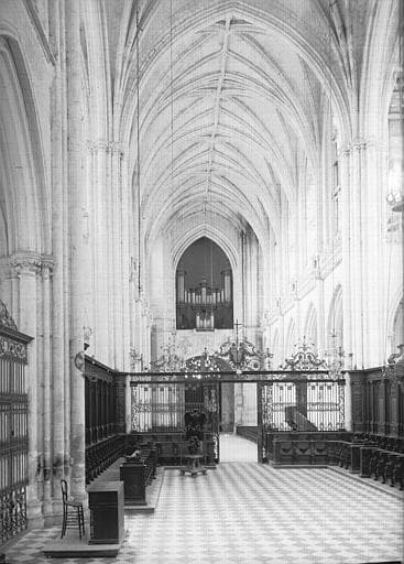 L'ancien orgue de l'abbaye de Saint-Riquier disparaît en 1719 dans un incendie. Il est remplacé en 1731 par l'instrument des Prémontés de Chartreuve et agrandi. Le remontage de l'instrument a été assuré par le facteur Louis Labour.Ce même facteur reviendra effectuer des travaux en 1748. L'instrument de Chartreuve comportait déjà trois claviers et un pédalier. Les claviers manuels de grand-orgue et de positif (48 notes chacun) correspondent aux deux buffets actuels alors que les jeux du troisième clavier (écho de 25 ou 37 notes) sont placés derrière la console et se voient amputés de leur première octave grave. Une console « en fenêtre » est encastrée dans le grand buffet. Les traces laissées dans la partie postérieure du petit buffet montrent que les registres du positif étaient primitivement actionnés par des tirants placés derrière le dos de l'organiste. Le pédalier « à la française » avec ses « marches » embrassait une étendue assez variable sans comporter le premier ut dièse. Cet instrument, dont la composition exacte est inconnue à cause des remaniements et des transformations de l'instrument au cours du XIXe siècle, comportait une trentaine de jeux. Visiblement, seuls le corps central du buffet principal avec ses trois tourelles, ainsi que le positif, relèvent de l'esthétique Louis XIV. Les ailes concaves paraissent avoir été ajoutées, sur le modèle de Saint-Omer, en 1730-1731.À la Révolution, la conversion de l'église abbatiale en église paroissiale sauve l'édifice qui n'est pas vendu comme bien national pour être démoli. Avec lui, l'orgue est sauvé. En 1815, les frères Basiliens (communauté religieuse fondée par Joseph Leleu qui fut fusionnée en 1880 avec les religieux de Saint-Vincent-de-Paul) s'installent à Valloires. Déjà, en Belgique d'où ils venaient, certains membres de cette communauté s'étaient occupés de facture d'orgue. Une fois en France, ils continuèrent à donner divers soins aux instruments de la région. Ainsi, le conseil de fabrique, institué conformément à la loi du 8 avril 1802 et à l'arrêté du 29 avril 1803, fit appel à eux quand on apprit que certains frères avaient des connaissances en facture d'orgue. Un premier relevage est exécuté en 1824 puis des réparations sont exécutées en 1835 et 1836.Considérant que l'orgue est dans un état de délabrement et que s'il n'est pas réparé rapidement, il sera entièrement perdu, le conseil de fabrique décide, le 9 juillet 1852, de procéder à la reconstruction de l'orgue dont le devis de restauration s'élève à 4 700 francs et confie les travaux aux frères Basiliens. Les travaux comprennent la construction de deux nouveaux sommiers à registres pour le grand-orgue et le positif. L'étendue des claviers est étendue à 54 notes par l'ajout d'une quarte dans l'aigu. La division d'Écho est remplacée par un nouveau Récit expressif de 42 notes. Selon le goût de l'époque, la Fourniture et la Cymbale du grand-orgue sont supprimées et la vieille Trompette est remplacée par un jeu à anches libres, l'Euphone, fort prisé à l'époque romantique. À la fin du XIXe siècle, des travaux ont été exécutés par Salomon van Bever puis l'instrument est restauré par Antoine Séquiès, de Lille, en 1925. Après la Seconde Guerre mondiale, l'instrument a besoin d'un sérieux relevage. Le classement de l'orgue comme « monument historique », le 20 juin 1949, assure que la restauration sera exécutée, mais il faudra attendre l'arrivée des Auxiliaires du Clergé, en 1953, pour remettre le projet à l'ordre du jour. Ce n'est qu'en 1959 que, sur recommandation de Félix Raugel et du chanoine Manzoni, les travaux sont confiés à la maison Roethinger, de Strasbourg. D'un simple relevage initialement prévu, le projet s'élargit à la suite de la réception de nouvelles subventions et l'accès aux restes de l'ancien orgue romantique du Petit Séminaire. Ainsi, en plus du relevage et de l'amélioration de l'alimentation en vent, l'Euphone romantique du grand-orgue est remplacée par une Fourniture de 4 rangs. Le pédalier à la française fait place à un pédalier normalisé de 30 notes. Les jeux de pédale sont enrichis par l'adjonction d'une Soubasse 16'et d'une Bombarde 16'. L'orgue est inauguré le 27 août 1961 par Antoine Reboulot.Le buffet est classé « Monument historique » le 9 mai 1981. En 2001, le facteur Laurent Plet est chargé d'exécuter une restauration de l'instrument au coût de 460 000 euros. Les travaux durent trois années et nécessitent plus de 11 000 heures de travail. Les buffets (XVIIe et XVIIIe siècles) sont restaurés sur place et les travaux sont terminés en novembre 2004. Quant à la partie instrumentale, sauf le réservoir, elle est démontée et transportée dans les ateliers du facteur dans lAube. Les travaux sont terminés le 28 novembre 2005.L'orgue restauré est inauguré par Philippe Lefebvre le 16 juin 2006 (source : Université du Québec)