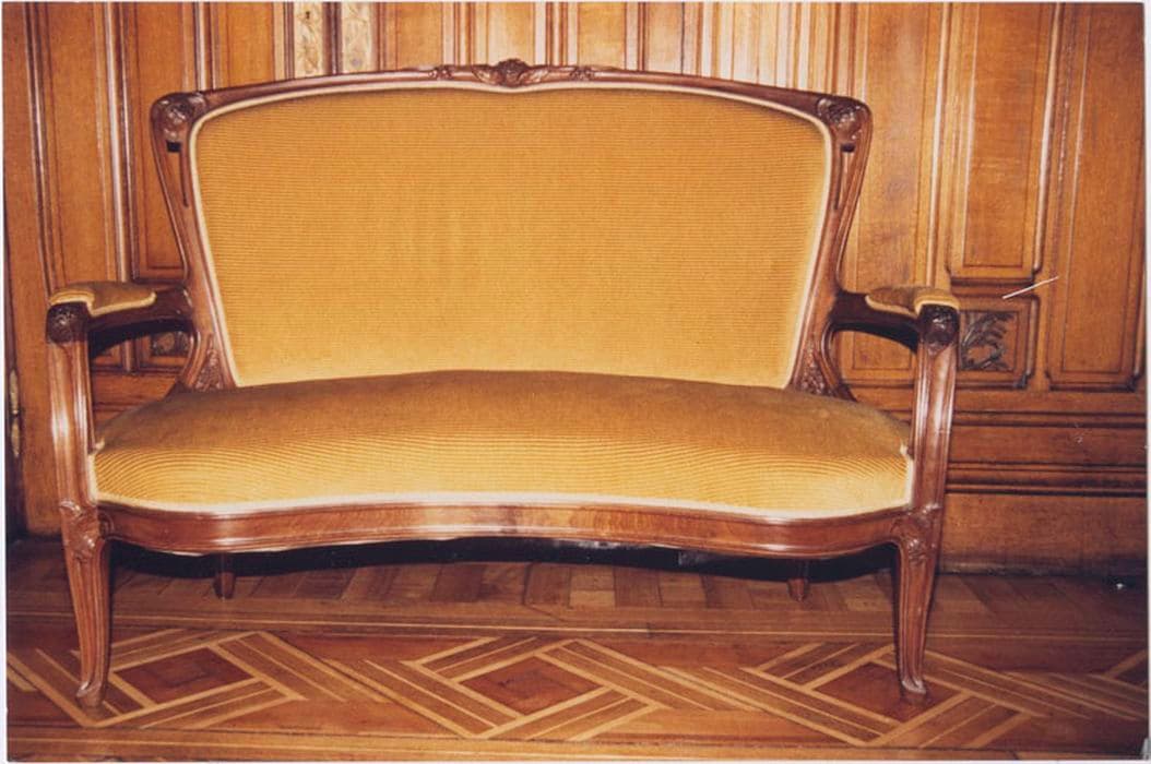 deux banquettes (décor hortensia), couleur jaune