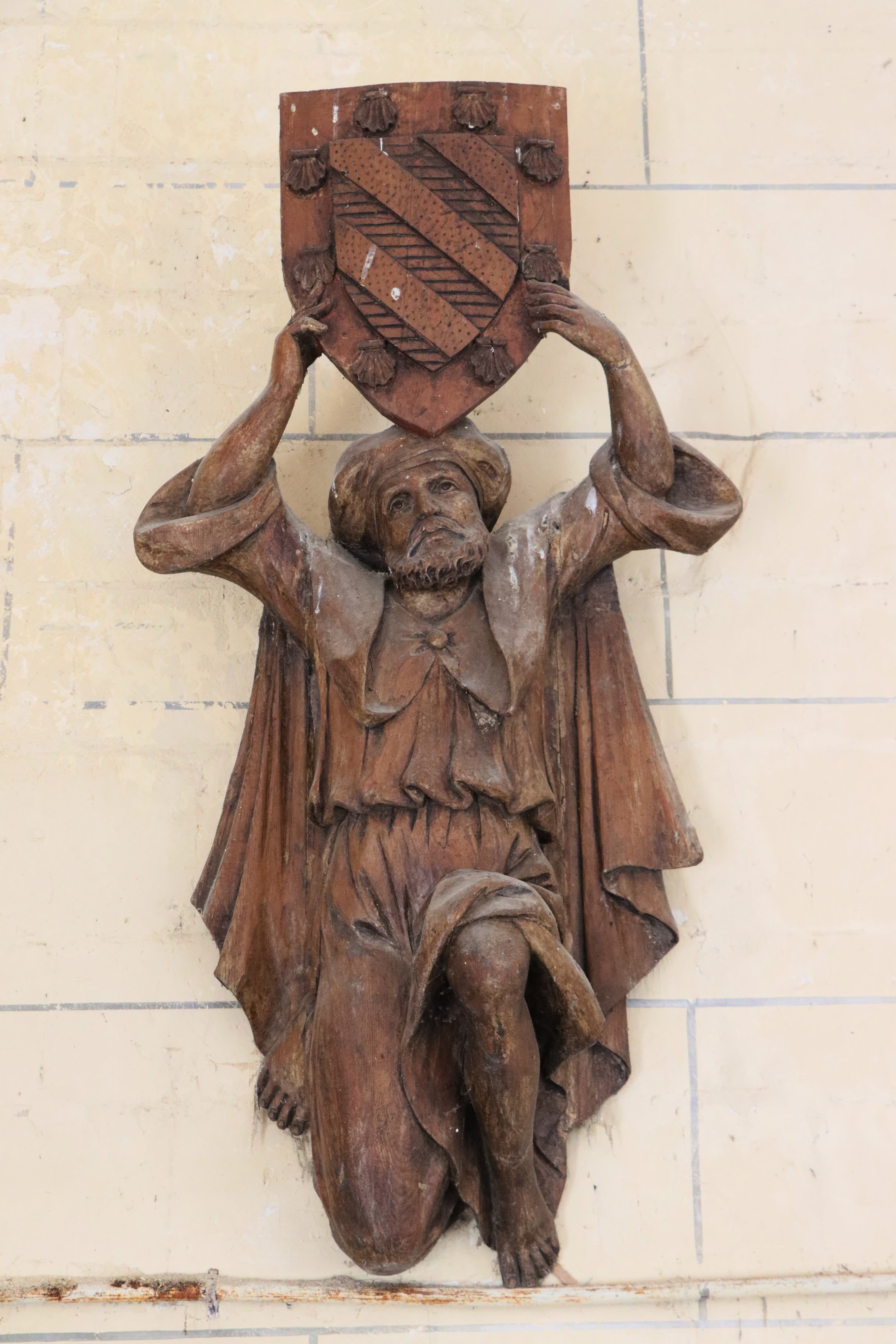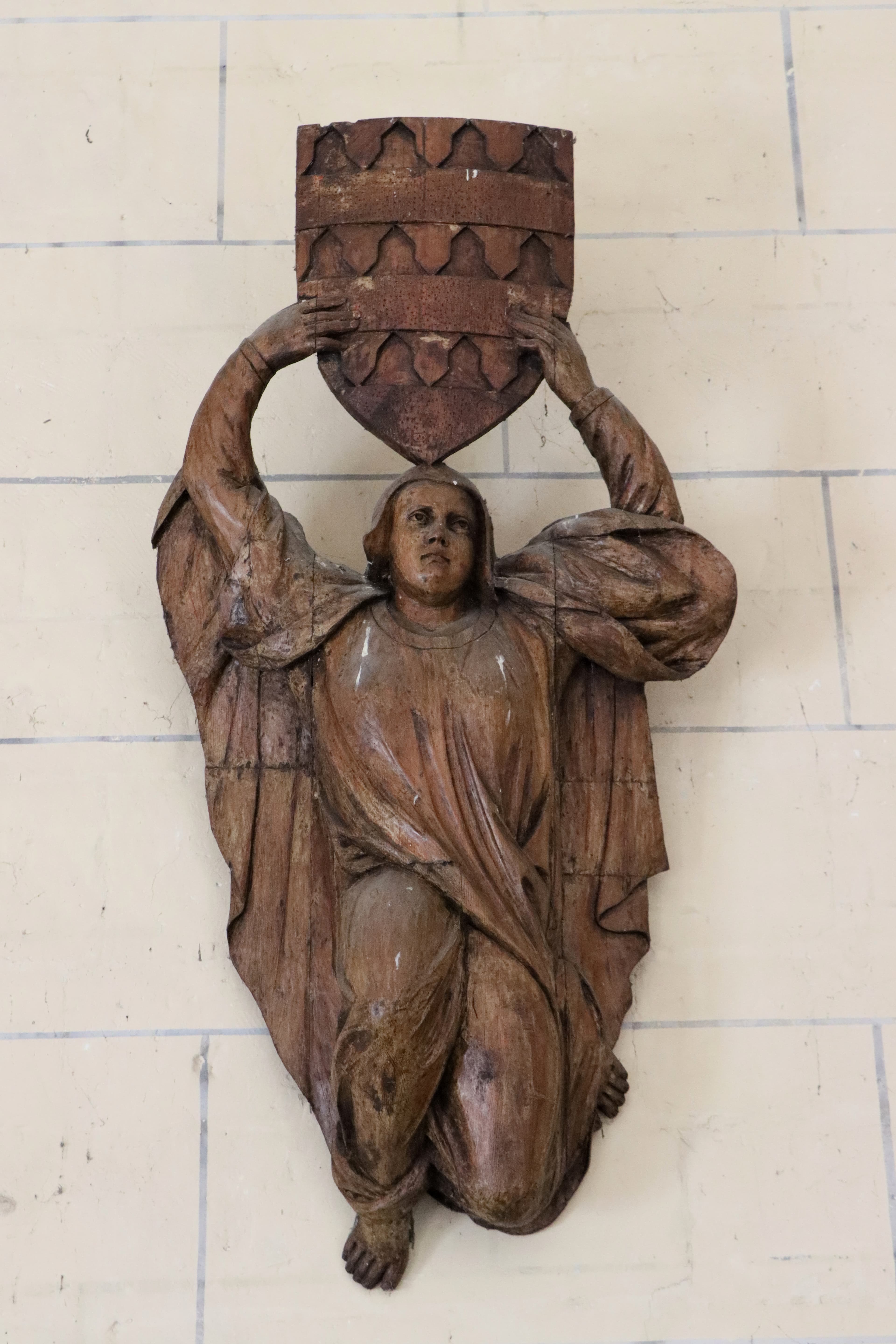 POP | Plateforme ouverte du patrimoinedeux statues : Personnages portant des écussons armoriés