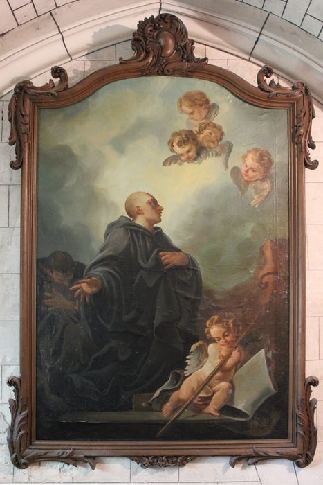 tableau et son cadre : Apothéose d'un abbé bénédictin (saint Valéry ou saint Riquier ?)