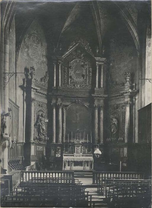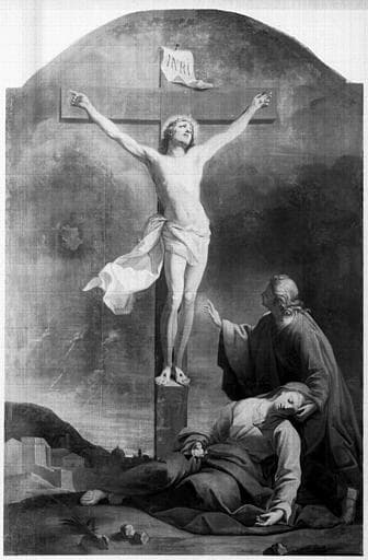POP | Plateforme ouverte du patrimoineretable, tableau, 2 statues (retable architecturé à niche) : la Crucifixion, saint Pierre, saint Paul, du maître-autel