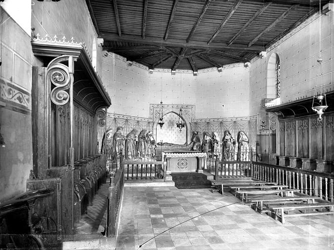 Ensemble compose de onze statues : au centre le Christ mort repose sur son linceul au-dessus du tombeau. Nicodème et Joseph d'Arimathie tiennent chacun un pan du linceul. De chaque côté huit autres personnages sont disposés en cortège. A droite : la Vierge soutenue par une suivante, madeleine soulevant le couvercle de la boîte à onguents et une autre sainte femme aux mains jointes. A gauche : saint Jean tenant la couronne d'épines, deux personnages âgés qui sont sûrement des apôtres et une dernière sainte femme essuyant une larme de ses yeux. Les statues grandeur nature reposent sur un socle continu légèrement mouluré.