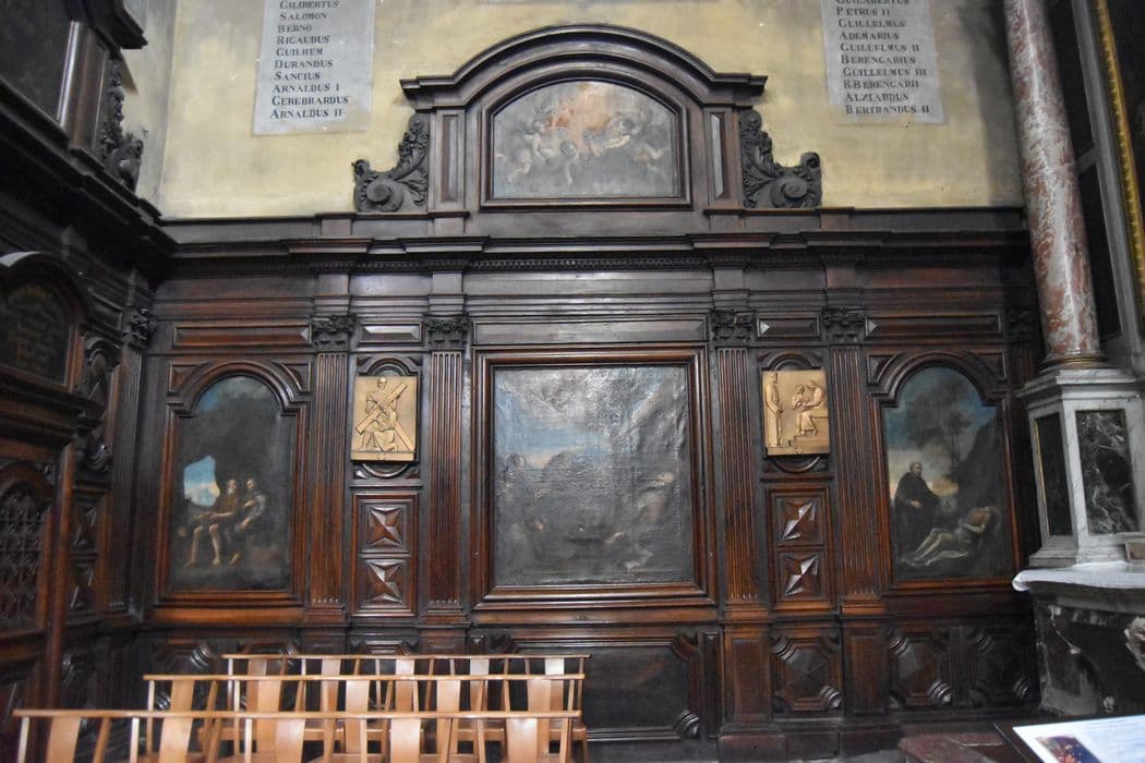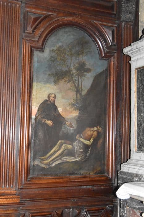 lambris de revêtement, confessionnal, 3 tableaux : la Mort de saint Antoine, la Mort de saint Paul l'ermite, saint Antoine visitant saint Paul l'ermite