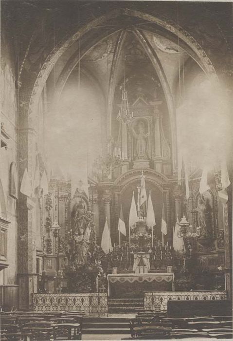 le soubassement du retable porte les mentions : 'DORE EN 1729' et 'DORE EN 1734'.