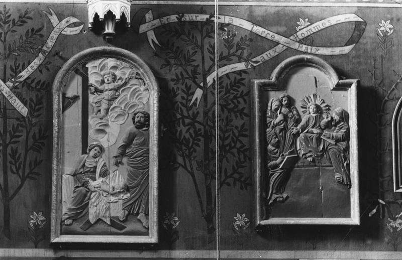 Ensemble de bas-reliefs pouvant provenir d'un ancien retable démoli.