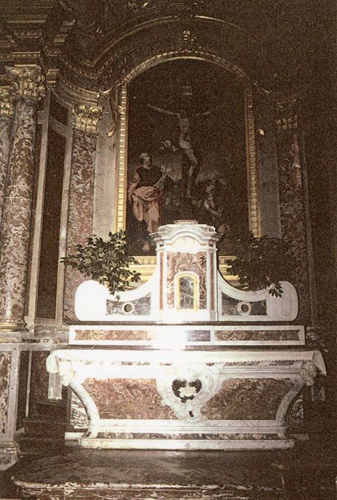 Autel galbé en marbre surmonté d'un tabernacle.