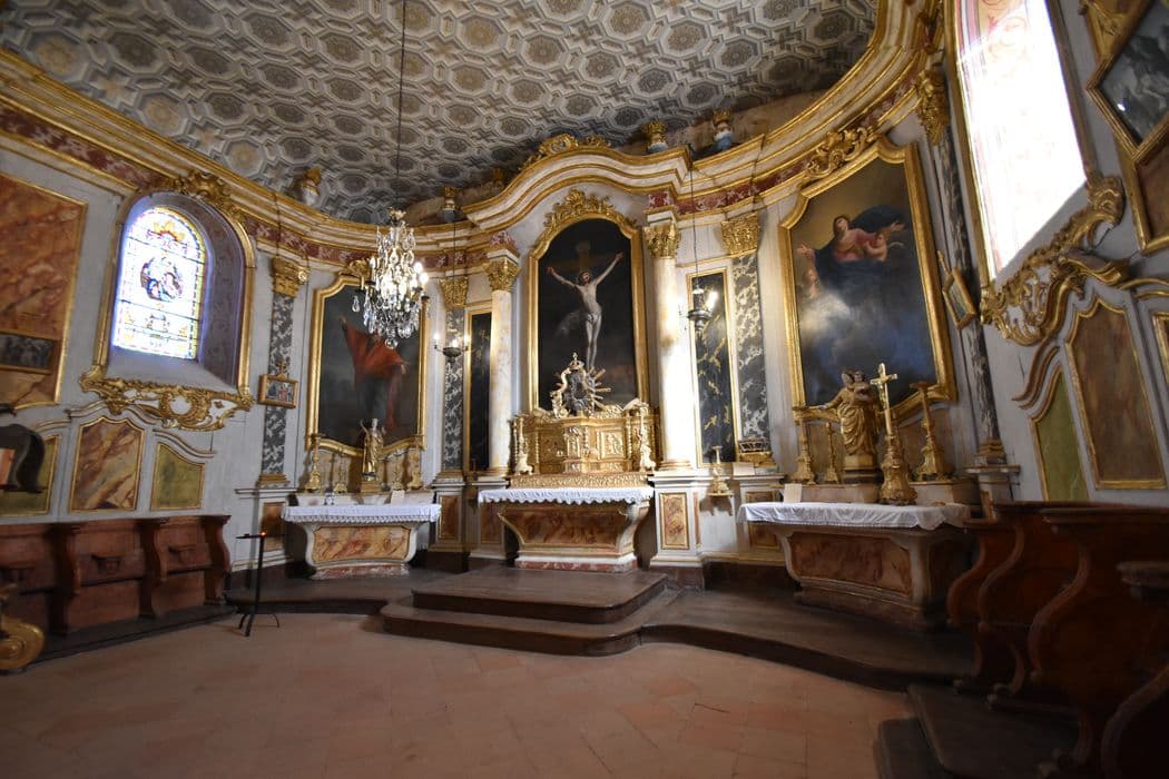 lambris de revêtement ; autel (3) ; retable (3) ; chaire à prêcher ; tribune
