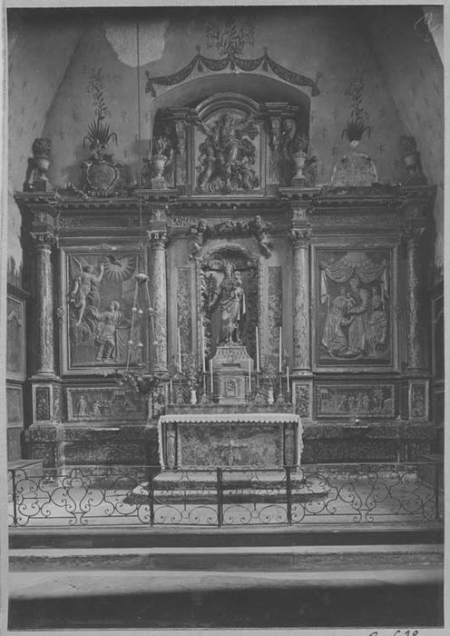 retable (retable architecturé) : la Vie de la Vierge, style baroque