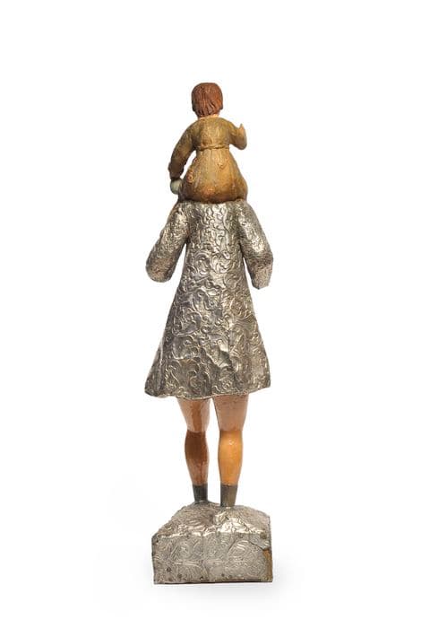 Les chairs sont peintes, le vêtement de saint Christophe est formé de feuilles d'argent estampées.