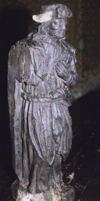 Cette statue d'applique a peut-être fait partie de stalles. La statue fut achetée en 1998 par la ville et faisait partie de l'ancienne collection Bellèze à Moissac. Elle proviendrait de l'église Saint-Jacques.