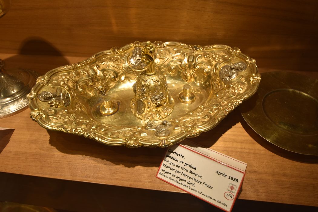 Louis Bachelet, orfèvre parisien (1844-1877) réalise le calice et Pierre Henry Favier, orfèvre parisien à partir de 1846, le plateau et les burettes.