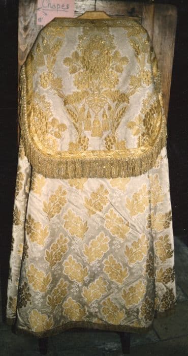 Vêtement liturgique à décor réalisé avec broderies et fils d’or.