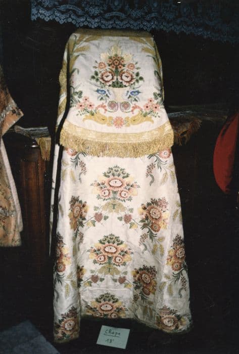 Vêtement liturgique à décor réalisé avec broderies et fils d’or.