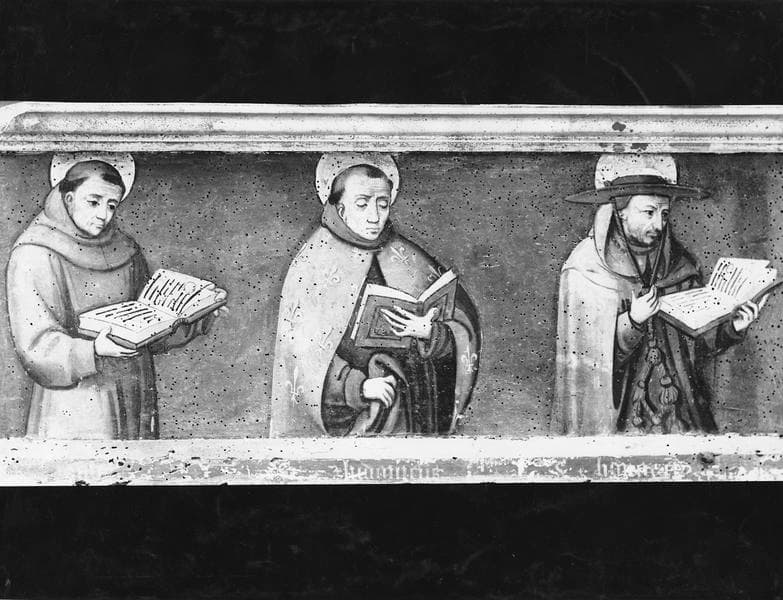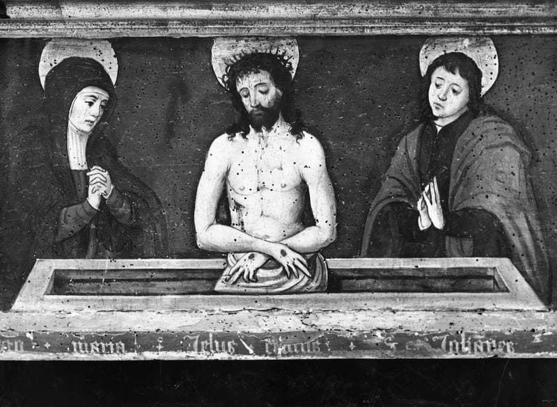prédelle : Christ au tombeau entouré de la Vierge, saint Jean et plusieurs saints
