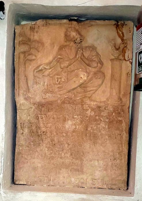 scellé dans un jambage d'arc de l'église primitive à l'entrée
