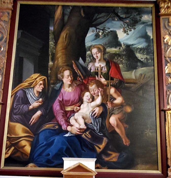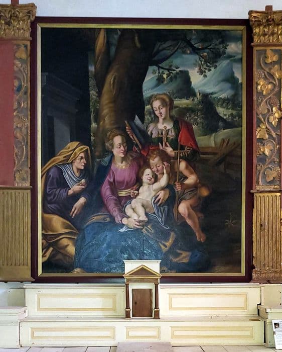 tableau : Sainte Anne, la Vierge à l'Enfant, sainte Elisabeth et saint Jean-Baptiste sous les traits de donateurs