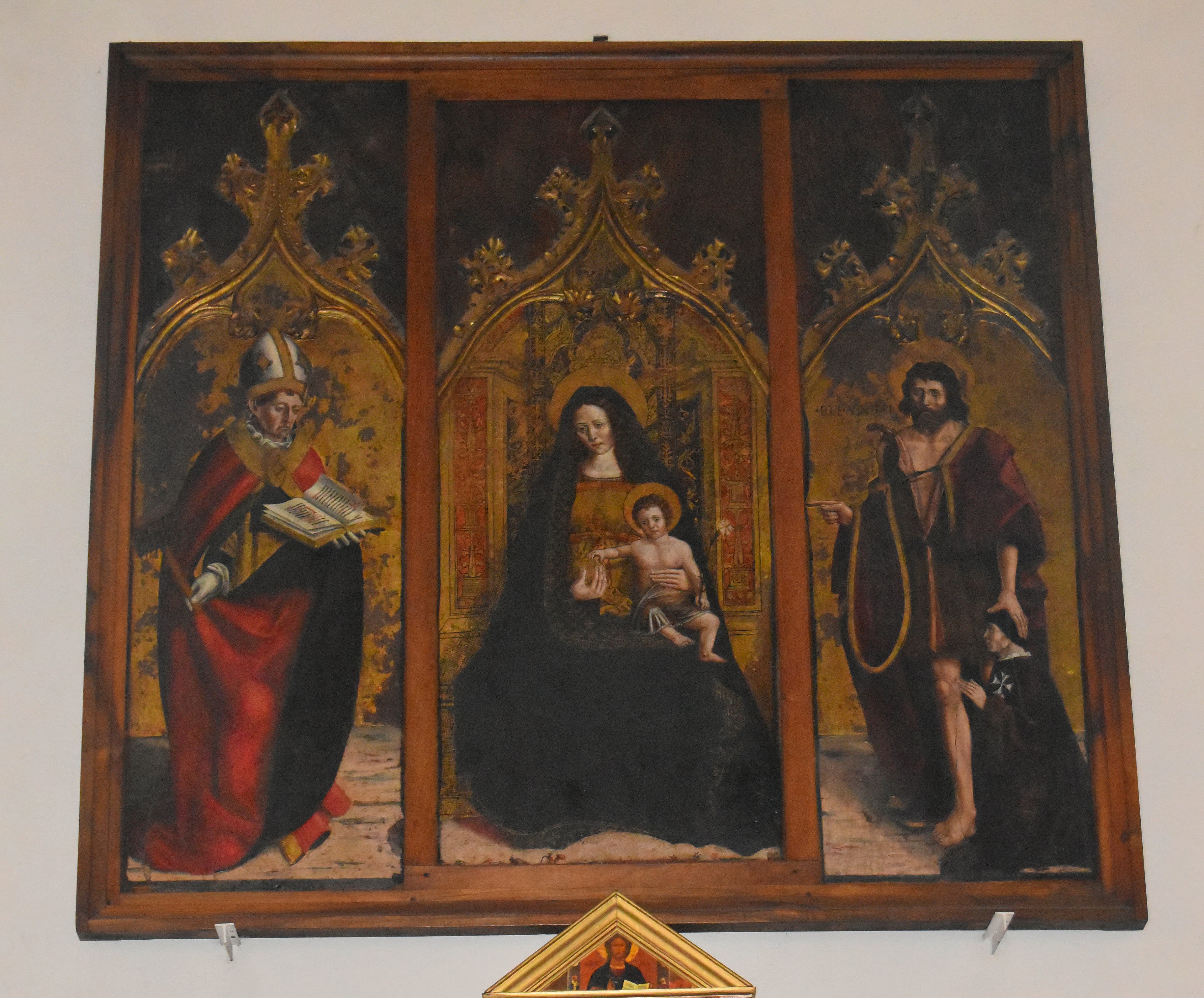 tableau (triptyque) : Vierge à l'Enfant entourée de saint Jean-Baptiste