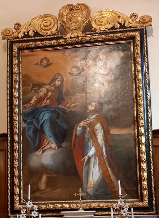 tableau, cadre : Saint François de Sales aux pieds de Notre-Dame