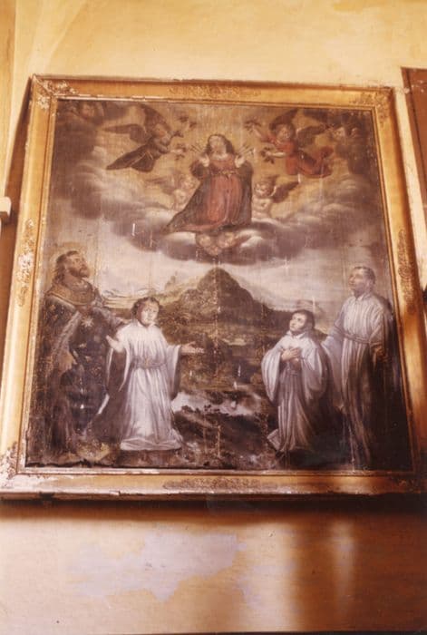 tableau : la Vierge des sept douleurs entourée de pénitents