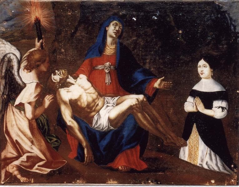 ex-voto 12 : Donatrice en prière devant Notre Dame de Pitié et un ange portant flambeau