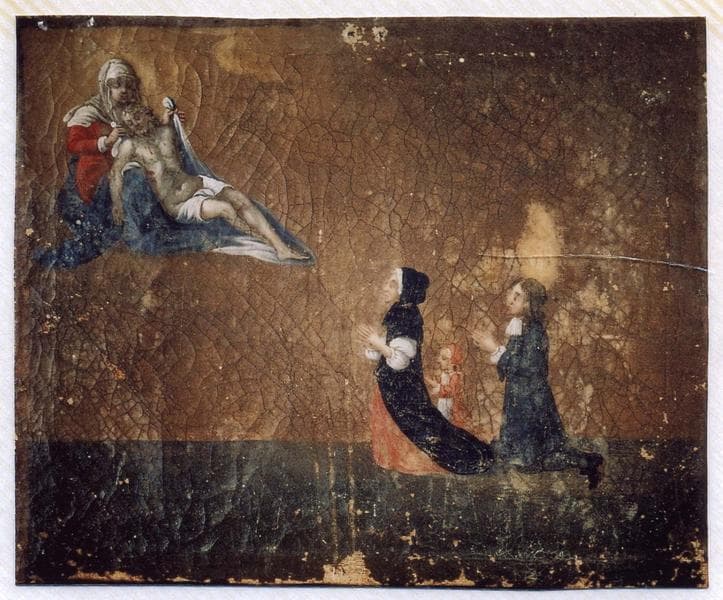 POP | Plateforme ouverte du patrimoineex-voto 23 : Un couple avec un enfant en action de grâce à Notre-Dame-de-Pitié