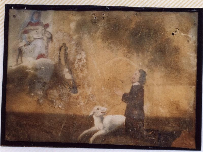 ex-voto 77 : Homme en prière avec un agneau devant Notre-Dame-de-Pitié