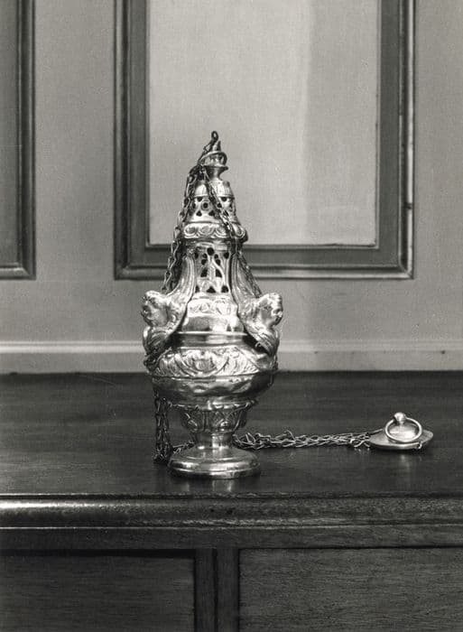 Les points d'attache des chaînes sont ornés de têtes d'anges ailés.