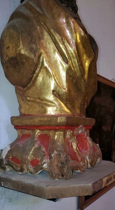 Buste d'une femme âgée. Le socle, chantourné, forme reliquaire.