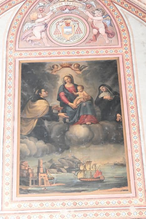 Vierge à l'Enfant ; sainte Thérèse ; saint Charles Borromée ; ville ; bateau