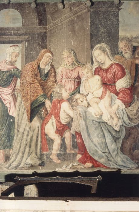saint Jean Baptiste ; Vierge à l'Enfant ; mouton ; architecture
