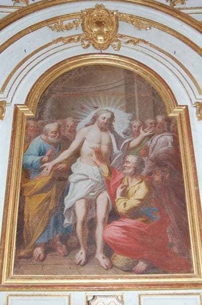 tableau d'autel : l'incrédulité de saint Thomas, 2 tableaux : saint Blaise et la Vierge des sept douleurs