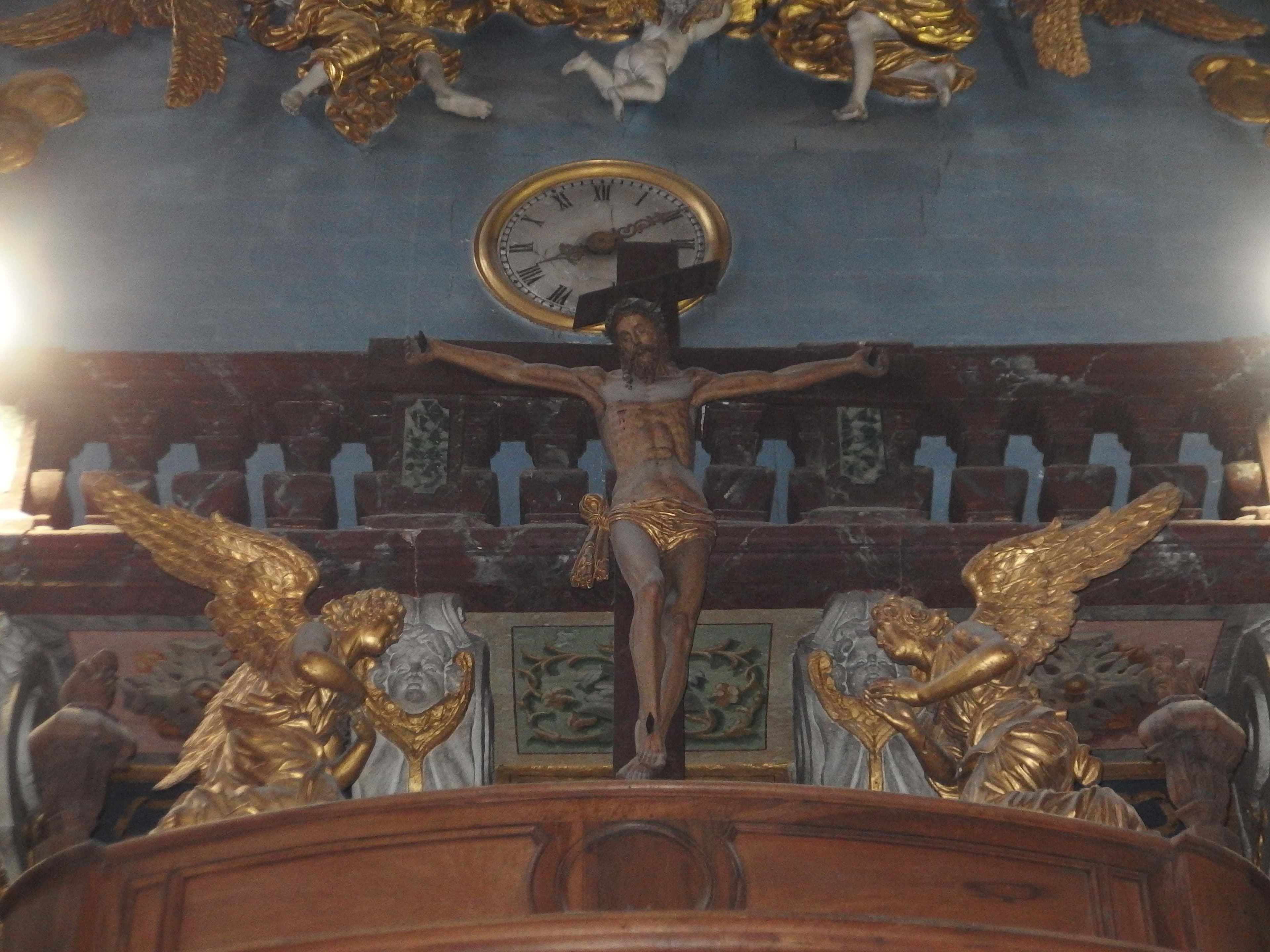 groupe sculpté : Christ en croix et deux anges adorateurs (Le)