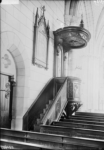 Dorure refaite vers 1877. Le rampant de l'escalier et la cuve éliptique sont ornés à leur base d'une moulure feuillagée, à la partie centrale de panneaux moulurés dont les petits sont chargés de chutes et celui du devant de la cuve d'un bas-relief représentant le semeur, au bord supérieur de cannelures. Au dossier une gloire en bas-relief et à l'abat-voix, dont le tour est décoré d'une guirlande de lauriers, une colombe rayonnante au plafond. Elle repose sur un pied central à l'aide de consoles à têtes d'anges ailées.