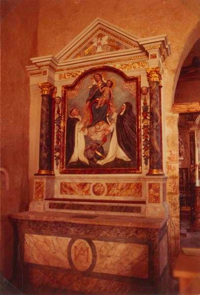 Le retable du côté nord représente la Vierge du Rosaire entre saint Dominique et sainte Catherine. Le retable du côté sud représente saint Marc l'Evangéliste avec, à ses pieds, le lion.