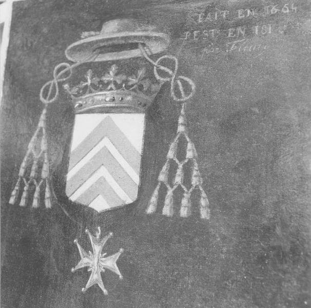 Vêtu du rochet bordé de dentelles et du camail, cravate du Saint-Esprit, barrette en tête, le prélat, debout, tient un livre de la main droite. La main gauche s'appuyant sur un papier posé sur un meuble est baguée au pouce.