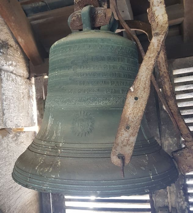 Cloche servant de timbre d'horloge. Monogramme IHS dans une gloire.