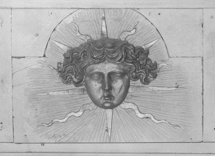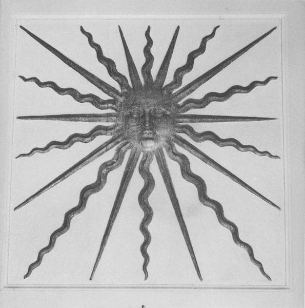 Quatorze fragments de boiserie provenant du château de Chambord, décorés de soleils rayonnants.