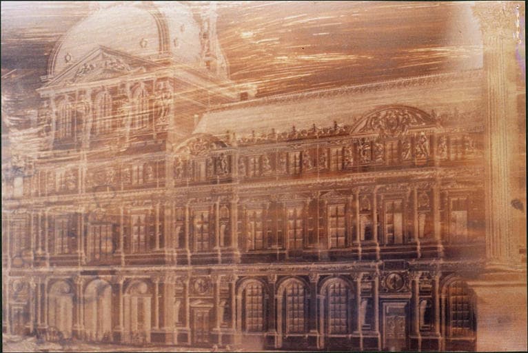POP | Plateforme ouverte du patrimoineplaque d'impression : Louvre (Le), façade de Henri II. Fondations du Vieux Louvre découvertes en 1866