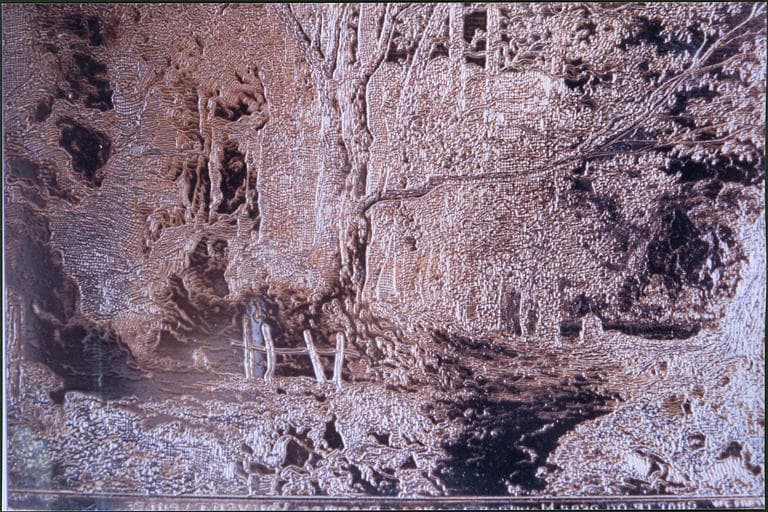 plaque d'impression : Grotte du père Montford dans la forêt de Vouvent, Vendée