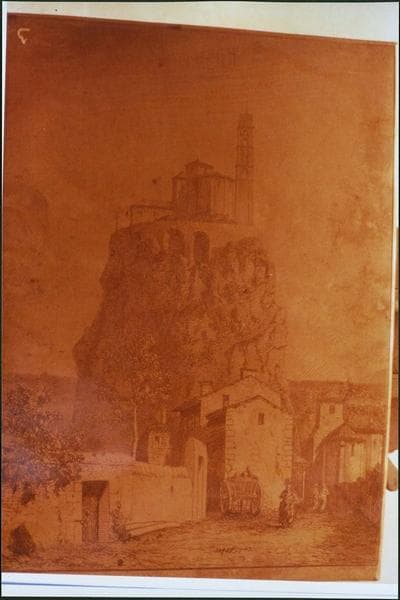 POP | Plateforme ouverte du patrimoineplaque d'impression : Rocher et chapelle Saint-Michel au Puy-en-Velay