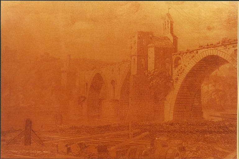 plaque d'impression : Avignon et le château de Villeneuve